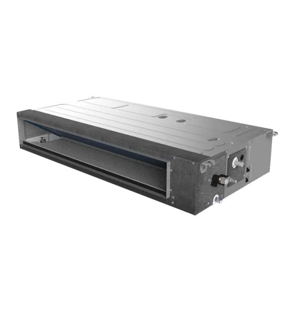 Κλιματιστικό 24000btu/h καναλάτου τύπου για σύνδεση με αεραγωγούς, με σχεδιασμό χαμηλού profile, ενσωματωμένη αντλία συμπυκνωμάτων και ενσύρματο χειριστήριο για ευέλικτη εγκατάσταση.